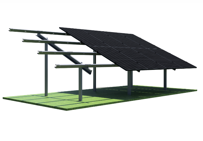 Kompletny system umożliwiający zamocowanie paneli w układzie pionowym. Aby zapewnić odpowiednią ochronę przed korozją, naziemna konstrukcja fotowoltaiczna w pionie wykonana jest z czarnej stali S320 z powłoką metaliczną Magnelis®.